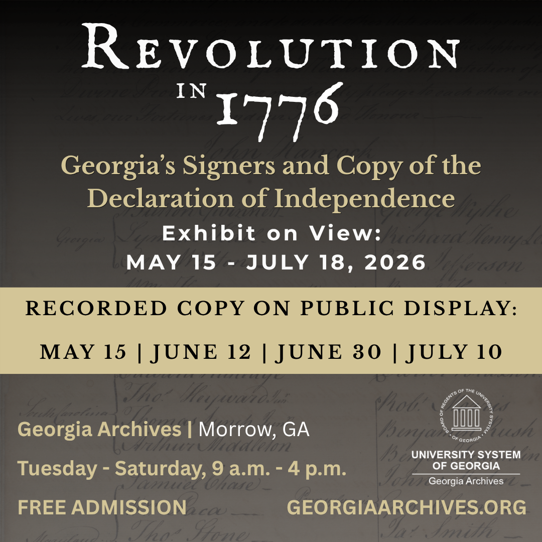 The Georgia Archives will present a new exhibit, Revolution in 1776: Georgia’s Signers and Copy of the