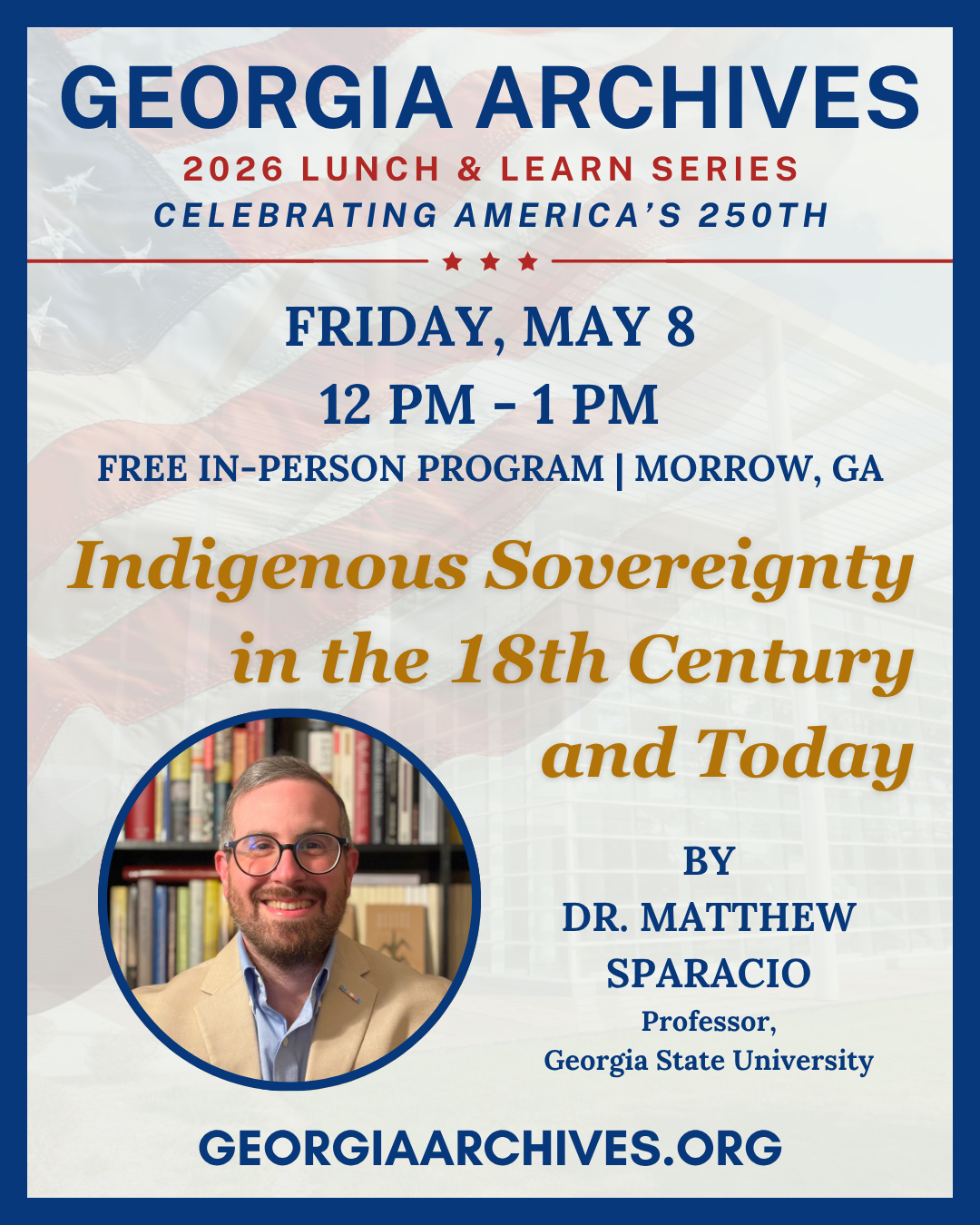 Sparacio. The program will take place on Friday, May 8, 2026, from 12:00 p.m. to 1:00 p.m., at the Georgia